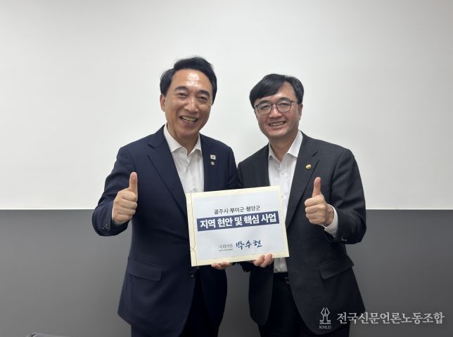 한편 박수현 국회의원은 국정기획위원회 국가균형성장특별위원장으로서 대한민국 균형성장 전략의 청사진을 설계하고, 이재명 대통령의 지역 공약을 구체화·유형화해 국정과제를 수립했다. 현재 내년도 예산 반영을 위해 재정당국과 긴밀히 협의 중이며, 최근 임기근 기획재정부 2차관 등과 잇따라 면담을 갖고 공주·부여·청양 핵심사업 예산 반영을 강력히 요청하는 등 발로 뛰고 있다.