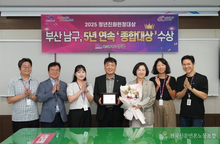 전국신문언론노동조합 이의용 기자 | 부산 남구가 (사)청년과미래 주관 청년친화헌정대상에서 5년 연속 종합대상을 수상했다고 밝혔다.