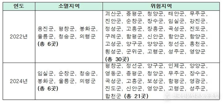 전국신문언론노동조합 강찬희 기자 | 국회 문화체육관광위원회 이기헌 의원(더불어민주당, 경기 고양병)이 '2024 지역서점 실태조사'를 분석한 결과, 전국 226개 기초자치단체 중 서점이 단 한 곳도 없는 ‘지역서점 소멸지역’은 6곳(봉화군‧순창군‧울릉군‧의령군‧임실군‧청송군)으로 나타났다.