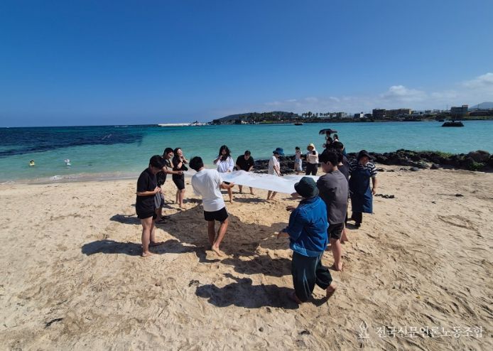 전국신문언론노동조합 김성길 기자 | 제주도교육청 남원중학교는 11일 제주시 신흥해수욕장에서 4-에이치(4-H)청소년회 학생들과 함께 제주문화예술재단 문화예술교육지원사업 ‘색으로 빛나는’ 프로그램에 참여했다.