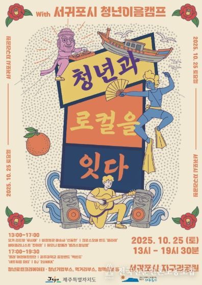 전국신문언론노동조합 김성길 기자 | 제주특별자치도가 25일 오후 1시 서귀포시 자구리공원 일대에서 청년들이 직접 기획한‘청년과 로컬을 잇다 with 서귀포시 청년이음캠프’를 연다. 청년이 주도해 청년과 지역 세대 간 융합을 이루는 축제다.