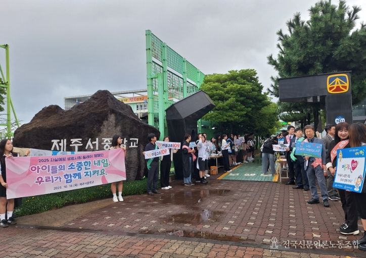 전국신문언론노동조합 김성길 기자 | 제주도교육청 제주서중학교는 16일 오전 8시부터 8시 30분까지 아침 등교 시간을 활용하여, 제주특별자치도교육청과 함께하는 ‘2025 자살예방 생명사랑 릴레이 캠페인’을 진행했다.