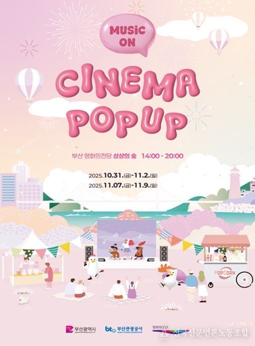 전국신문언론노동조합 조창제 기자 | 부산시는 부산관광공사와 함께 오늘(31일)부터 11월 9일 기간 중 금․토․일 오후 2시부터 8시까지 영화의전당 상상의 숲에서 '시네마 팝업'을 본격적으로 운영한다고 밝혔다.