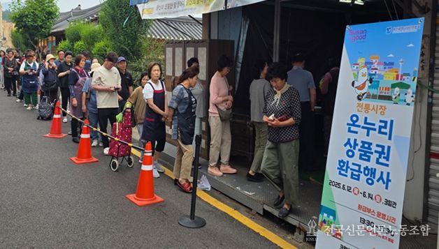 전국신문언론노동조합 조창제 기자 | 부산시는 '전통시장 온누리상품권 환급행사'를 오는 11월 6일부터 8일까지 3일간 오후 1시 30분부터 5시 30분까지 부산 100개 전통시장(87개 환급장소)에서 개최한다고 밝혔다.