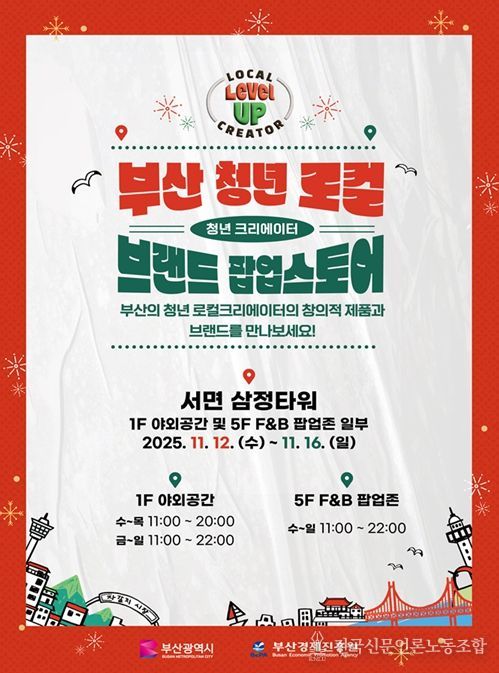 전국신문언론노동조합 조창제 기자 | 부산시와 부산경제진흥원은 오늘(12일)부터 16일까지 5일간 서면 삼정타워에서 '2025 부산 청년 로컬 브랜드 팝업스토어'를 개최한다고 밝혔다.