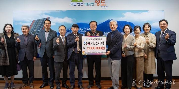 전국신문언론노동조합 조창제 기자 | (사)무궁화복지월드 영도권봉사단은 지난 12월 2일 영도구청을 방문하여 우수한 지역인재 양성을 위해 (재)행복영도장학회에 200만 원을 기탁했다.