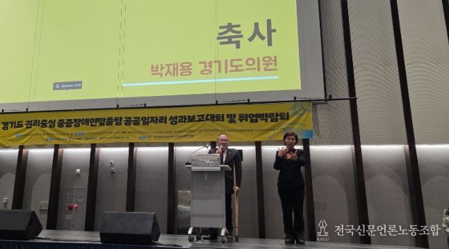 전국신문언론노동조합 강찬희 기자 | 경기도의회 보건복지위원회 박재용 의원(더불어민주당, 비례)은 16일, 수원컨벤션센터에서 열린 ‘2025년 경기도 권리중심 중증장애인맞춤형 공공일자리 성과보고대회 및 취업박람회’에 참석해 축사를 전하고, 중증장애인의 노동권 보장과 권리중심 공공일자리 정책의 지속적인 발전 필요성을 강조했다.