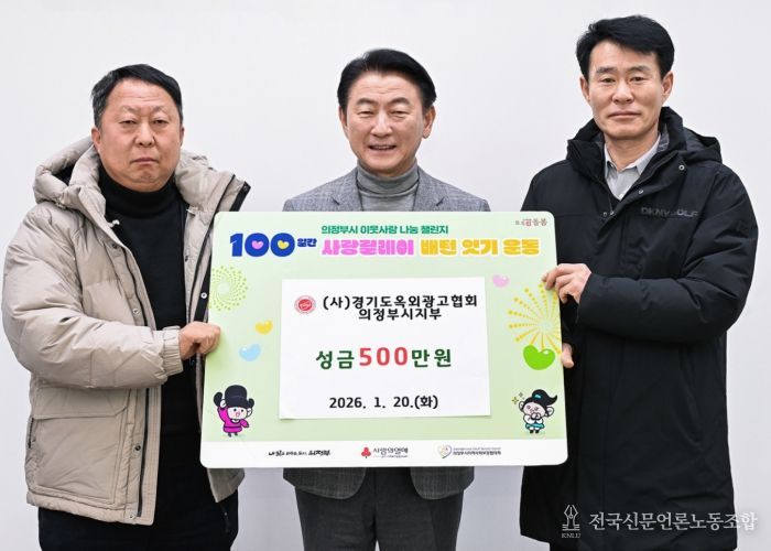 전국신문언론노동조합 기자 | 의정부시는 1월 20일 (사)경기도옥외광고협회 의정부시지부가 ‘100일간 사랑릴레이 배턴 잇기’에 동참해 성금 500만 원을 기탁했다고 밝혔다.