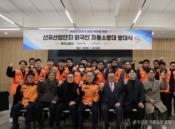 전국신문언론노동조합 기자 | 파주소방서는 1월 20일 오후 4시, 파주시 문산읍 선유산업단지 내 스페이스톡에서 외국인 근로자 자율소방대 발대식을 열었다. 이번 행사는 겨울철 화재위험이 높은 시기에 외국인 고용사업장의 자율안전관리 역량을 높이기 위한 취지로 마련됐다.