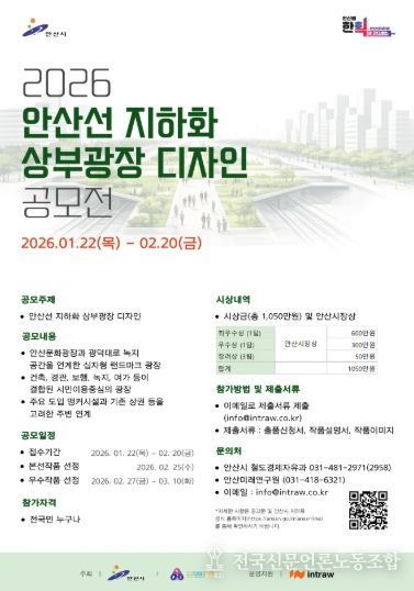 이번 공모전은 안산선 지하화 공식 누리집 개편에 맞춰 진행되는 시민 참여 행사다. 안산선 지하화에 관심 있는 국민이면 누구나 참여 가능하다. 이달 22일부터 내달 20일까지 약 한 달간 응모할 수 있다. 공모전 관련 세부 내용은 안산선 지하화 공식 누리집을 통해 확인할 수 있다.