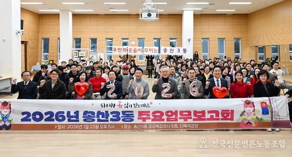전국신문언론노동조합 기자 | 의정부시 송산3동행정복지센터는 1월 23일 지역 주민과 내빈 등 100여 명이 참석한 가운데 ‘성장의 결실과 함께, 더 큰 미래로’를 주제로 ‘2026년 송산3동 주요업무보고회’를 개최했다.