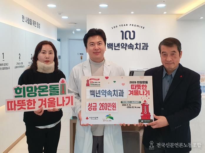 김창우 백년약속치과 원장은 “작년부터 폐금을 모아 기부를 이어오고 있다”며 “앞으로도 지역사회에 실질적인 도움이 될 수 있도록 나눔 활동을 지속하겠다”고 말했다.