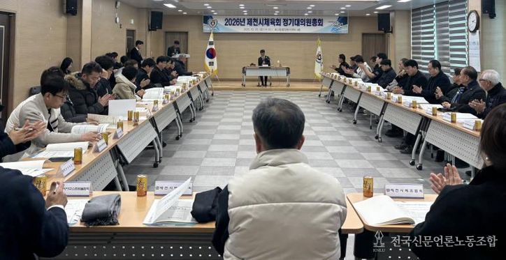 전국신문언론노동조합 김성길 기자 | 제천시체육회는 2026년 정기 대의원 총회를 개최하고, 2025년 사업 결과 및 세입 세출 결산을 비롯한 주요 안건을 심의, 의결하며 새해 제천 체육의 운영 방향을 공유했다.