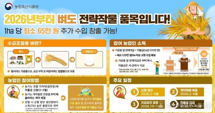 이번에 추가된 수급조절용 벼는 평상시에는 생산 단계부터 가공용으로 용도를 제한해 밥쌀 시장에서 해당 면적을 격리하고 흉작 등 비상시에는 밥쌀용으로 전환해 수급 불안을 해소하는 역할을 한다.