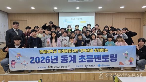 전국신문언론노동조합 강찬희 기자 | 영월군청소년문화의집은 지난 2월 9일부터 13일까지 5일간 지역 초등학생과 대학생 멘토가 함께한 '연세대학교 머레이봉사단과 함께하는 2026년 동계 초등 멘토링' 프로그램을 성황리에 마쳤다고 밝혔다.