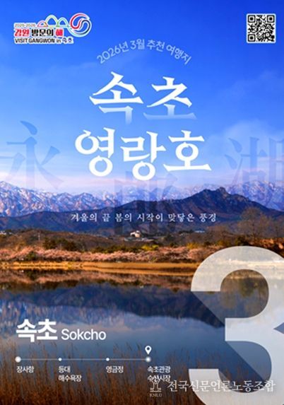 전국신문언론노동조합 강찬희 기자 | 강원특별자치도와 강원관광재단은 2026년 강원 방문의 해 3월 추천 여행지로 속초시와 동해시를 선정하여 대대적인 홍보마케팅을 추진한다고 밝혔다.