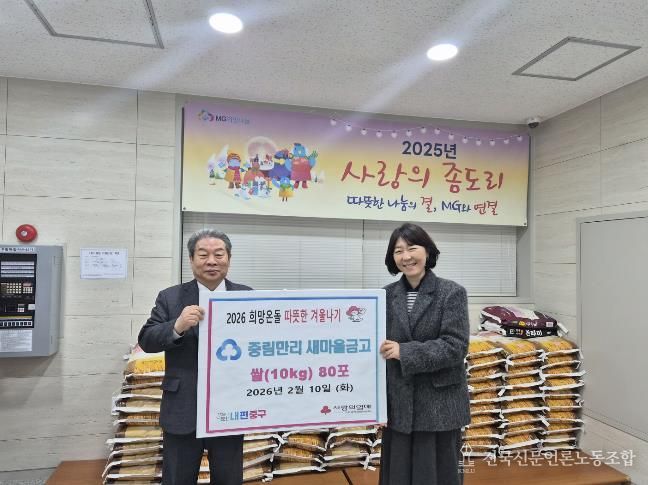 지난 10일, 새마을금고는 10kg의 백미 80포와 성금 100만원을 중림동 주민센터에 기탁했다. 백미는 중림동 내 경로당과 쪽방 주민을 지원하는 ‘한사랑공동체’와 저소득 가정 등에 전달돼 이웃들의 식탁을 든든하게 채웠다. 또한 성금은 복지 사각지대에 놓인 20가구에 각 5만 원씩 지원됐다.