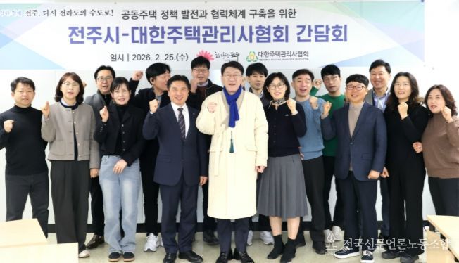 전국신문언론노동조합 강찬희 기자 | 전주시는 25일 공동주택 정책 발전과 민관 협력체계 구축을 위해 공동주택관리업무 전문기관인 대한주택관리사협회 전북도회와 간담회를 가졌다.