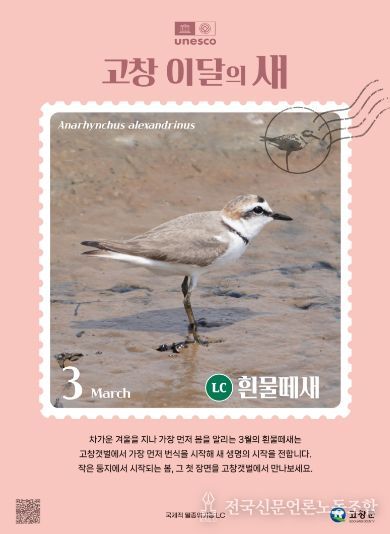 전국신문언론노동조합 강찬희 기자 | 고창군이 3월 ‘고창갯벌 이달의 새’로 흰물떼새(학명 Anarhynchus alexandrinus)를 선정하고, 봄철 갯벌 번식 조류 보호와 생태계 보전의 중요성을 알리는 홍보 활동을 추진한다.