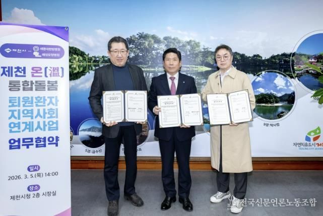 그동안 퇴원 환자들은 가정으로 돌아간 뒤 적절한 돌봄 서비스가 연결되지 않아 건강이 악화하거나 재입원하는 사례가 적지 않았다. 시는 이번 협약을 계리로 의료와 돌봄이 유기적으로 연계되는 ‘제천형 통합돌봄 체계’를 구축해 이 같은 악순환을 예방한다는 방침이다.