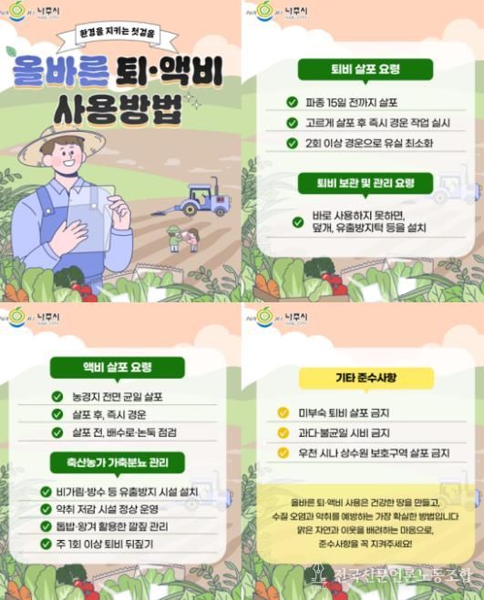나주시 관계자는 “퇴액비의 적정 사용은 농업 생산성과 시민 생활환경 모두와 직결되는 문제”라며 “농가에서도 부숙 기준 준수와 살포 관리에 적극 협조해 주시길 바란다”고 말했다.