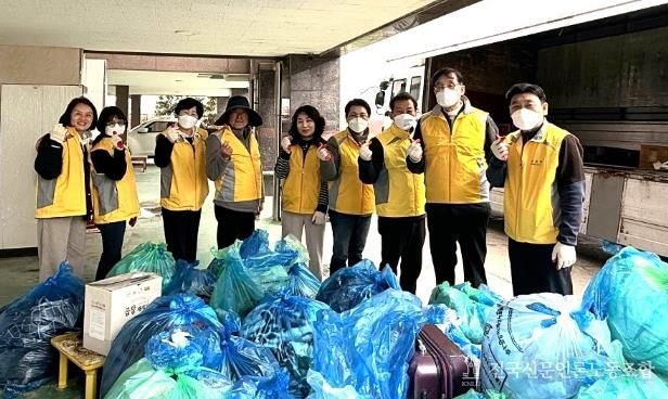 이어 쾌적한 주거환경 개선을 위해 지사협 및 면 행정복지센터 직원들이 협력하여 집안에 방치된 1톤가량의 쓰레기를 수거했다.