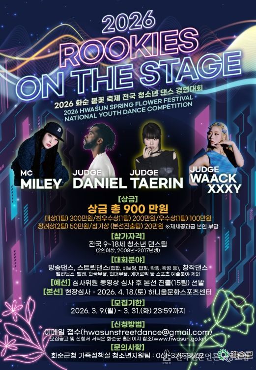 전국신문언론노동조합 강찬희 기자 | 화순군은 ‘2026 화순 봄꽃 축제’를 맞아 전국 청소년들의 끼와 열정을 담아낼 ‘제3회 전국 청소년 댄스 경연대회’를 개최하고 참가자를 모집한다고 10일 밝혔다.