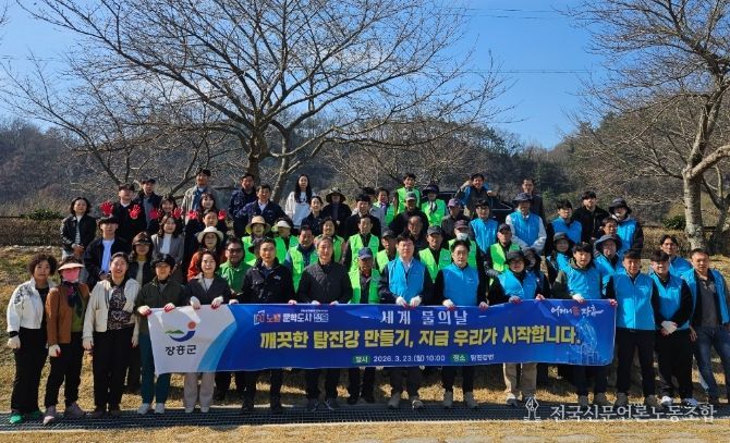 전국신문언론노동조합 강찬희 기자 | 장흥군은 2026년 세계 물의 날(3월 22일)을 맞아 물의 소중함을 되새기고 안전한 식수원 확보를 위한 환경보전 실천의 일환으로, 지난 3월 23일 탐진강변 일원에서 환경정화활동을 실시했다고 밝혔다.