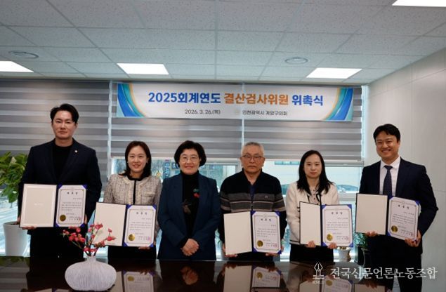 전국신문언론노동조합 강찬희 기자 | 인천 계양구의회는 지난 26일 2025회계연도 결산검사위원으로 선임된 5명에게 위촉장을 수여했다.