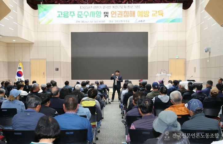 전국신문언론노동조합 강찬희 기자 | 고흥군은 26일 군청 우주홀에서 외국인 계절근로자 제도의 안정적 운영을 위해 2026년 상반기 계절근로자 프로그램 고용주 교육을 실시하고, 근로환경 개선과 인권 보호를 위한 지원 대책을 추진하고 있다고 밝혔다.