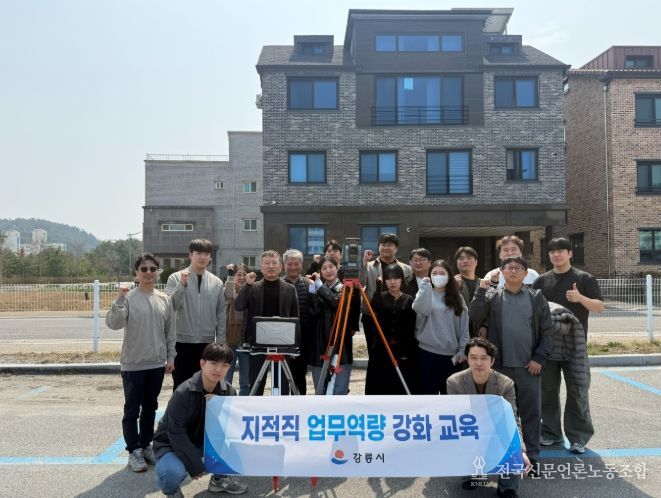 전국신문언론노동조합 강찬희 기자 | 강릉시는 지난 3월 27일 유천동 일원에서 지적직 공무원 21명을 대상으로 현장 실무능력 배양을 위한 '2026 기술직 역량강화 지적측량 실습 교육'을 실시했다.