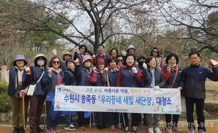 전국신문언론노동조합 김성길 기자 | 수원시 장안구 송죽동은 지난 31일, 만석거 새빛축제를 앞두고 방문객들에게 깨끗하고 안전한 축제 환경을 제공하기 위해 만석거 일원에서 대청소를 실시했다.