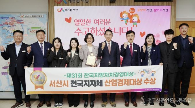 전국신문언론노동조합 강찬희 기자 | 충남 서산시는 지난해에 이어 한국지방자치경영대상 ‘산업경제대상’을 2년 연속 수상했다고 밝혔다.