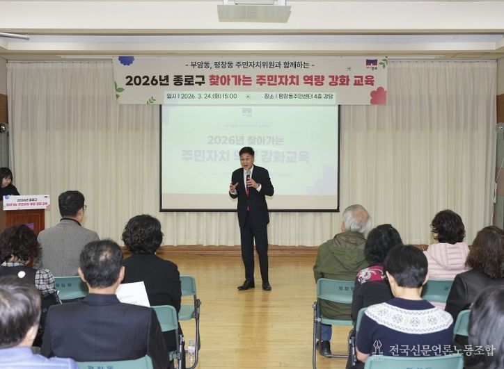 전국신문언론노동조합 강찬희 기자 | 종로구가 3월 20일부터 4월 1일까지 주민자치위원 330명을 대상으로 '2026년 찾아가는 주민자치 역량 강화교육'을 진행했다.