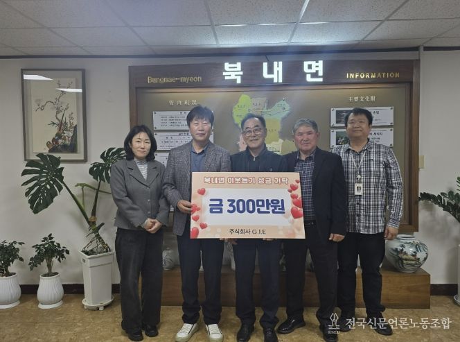 전국신문언론노동조합 김성길 기자 | 북내면행정복지센터는 2026년 4월 1일 ㈜G.I.E 홍광표 대표가 지역 내 어려운 이웃을 위해 300만 원을 지정기탁했다고 밝혔다.