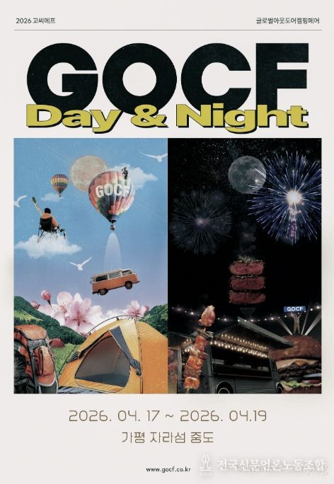 전국신문언론노동조합 김성길 기자 | 2026년 자라섬 대표 축제로 선정된 ‘2026 글로벌 아웃도어 캠핑 페어(GOCF)’가 오는 17일부터 19일까지 가평 자라섬에서 성대하게 열린다. 이 기간 봄과 가을 꽃 축제로 유명한 자라섬이 국내 최대 규모의 야외 캠핑 전시장으로 탈바꿈하게 된다.