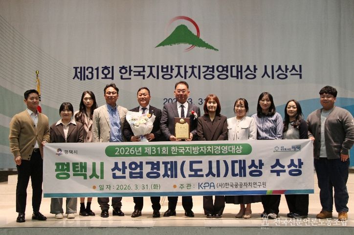 전국신문언론노동조합 김성길 기자 | 평택시가 (사)한국공공자치연구원이 주관한 '2026년 제31회 한국지방자치경영대상’에서 산업경제(도시) 부문 대상을 받았다.