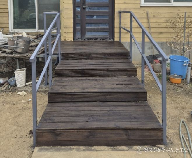 둔포면은 상담 직후 해당 가구를 통합사례관리 대상자로 선정하고 신속한 지원에 나섰다. 위험한 기존 구조물을 철거한 뒤 견고한 자재로 계단을 재시공했으며, 거동이 불편한 어르신을 위해 양옆에 안전 난간(핸드레일)을 추가 설치해 보행 안전성을 확보했다.