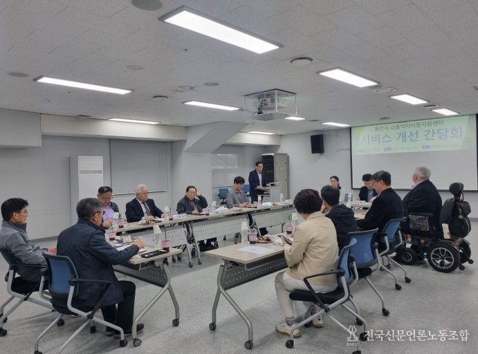 전국신문언론노동조합 김성길 기자 | 용인도시공사 교통약자이동지원센터는 용인 미르스타디움 회의실에서 교통약자이동지원 서비스 개선 협의체 간담회를 개최했다고 6일 밝혔다. 이번 협의체 간담회는 교통약자 이동권의 실질적 보장을 위해 서비스 이용자 및 관내 관련 단체의 현장 의견을 폭넓게 수렴하고, 이를 바탕으로 실효성 있는 서비스 개선 방안을 모색하고자 마련됐다.