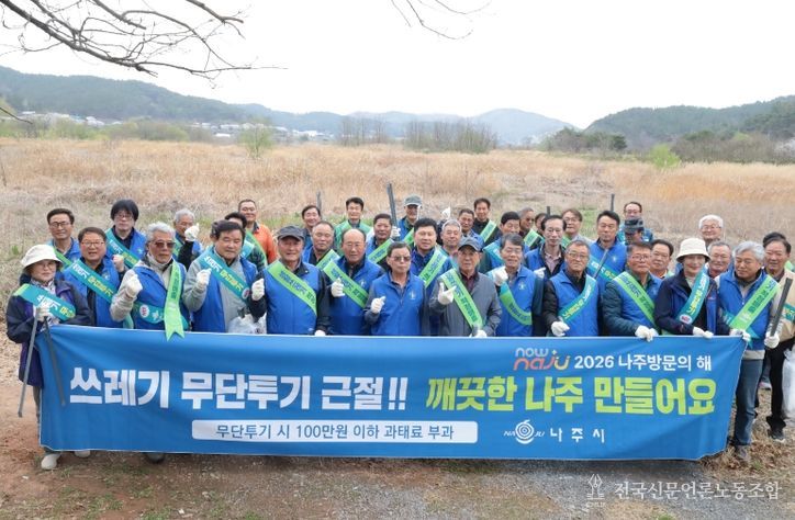 전국신문언론노동조합 강찬희 기자 | 전남 나주시 농촌지도자회가 ‘2026 나주방문의 해’를 맞아 나주호 일원 환경 정화 활동을 펼치며 탄소중립 실천과 쾌적한 농촌 환경 조성에 앞장서고 있다.