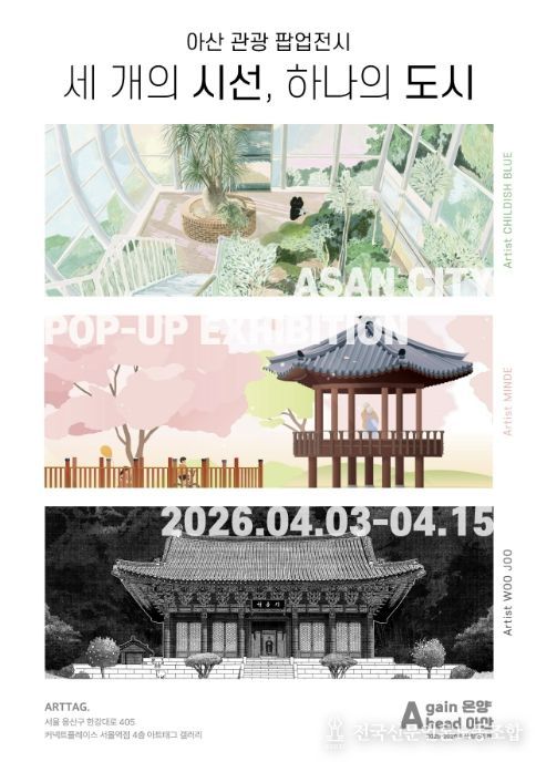‘세 개의 시선, 하나의 도시’라는 주제로 열리는 이번 팝업스토어는 아산 관광 12선을 세 명의 일러스트 작가(우주, 민데, 차일디시블루)의 독창적인 시각으로 재해석한 작품들을 선보이며, 기존의 관광 이미지에서 벗어나 젊고 감각적인 도시 이미지로서의 아산을 대중에게 전달할 예정이다.
