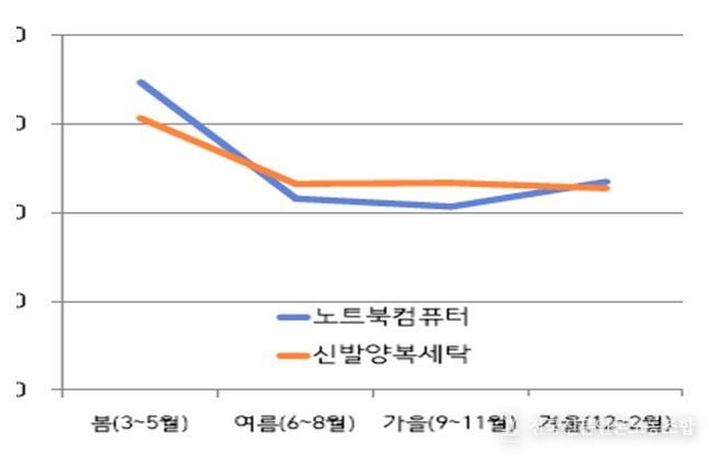 분석 결과, 노트북·컴퓨터는 봄철 상담 비중이 34.6%(연평균 470건), 신발·양복 세탁은 30.7%(연평균 1,312건)로 나타나 두 분야 모두 봄철에 피해상담이 집중되는 것으로 확인됐다.