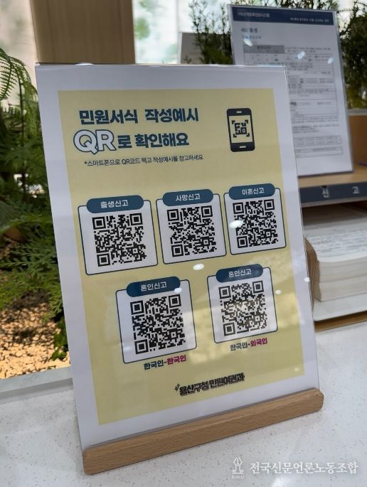 전국신문언론노동조합 강찬희 기자 | 서울 용산구가 구민들이 가족관계등록신고서 작성을 수월하게 할 수 있도록 주요 서식 4종에 대해 정보무늬(QR코드) 작성 예시 안내 서비스를 제공한다.