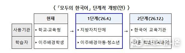 교육 현장에서 활용하는 사례가 늘어나면서, 유·초·중·고등학교·대학‧교육청뿐 아니라 보다 많은 기관과 학습자들이 활용할 수 있도록 개편할 필요성이 제기됐다. 특히, 지난 3월 19일 열린 ‘이주배경학생 교육 지원을 위한 교육청-지방자치단체 협업 공동연수(워크숍)’에서 소개된 '모두의 한국어' 시스템에 대해, 지방자치단체에서도 사용할 수 있게 해달라는 요청이 있었다.