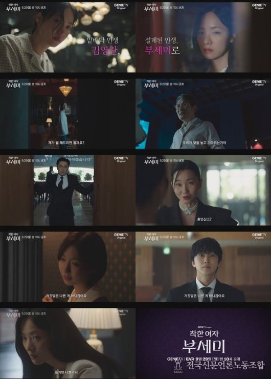 오는 9월 29일(월) 밤 10시 첫 공개될 지니 TV 오리지널 ‘착한 여자 부세미’(연출 박유영/ 극본 현규리/ 기획 KT스튜디오지니/ 제작 크로스픽쳐스, 트리스튜디오)에서 1차 티저 영상과 티저 포스터로 밑바닥 인생을 청산하기 위한 김영란(전여빈 분)의 큰 그림을 예고하고 있다.