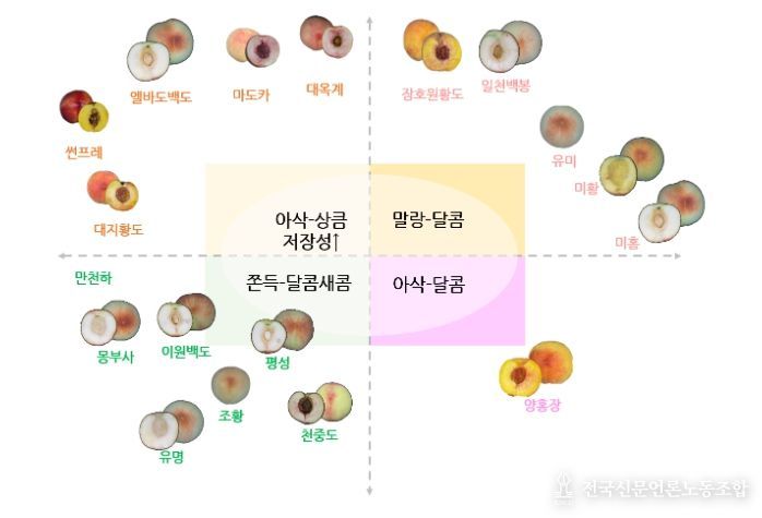우리나라에서는 해마다 100여 종 이상의 복숭아가 유통되지만, 소비자가 겉모양만으로 맛이나 식감, 저장성을 확인하는 것은 쉽지 않다.