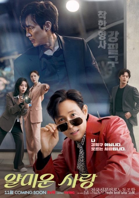 오는 11월 방송 예정인 tvN 새 월화드라마 ‘얄미운 사랑’(연출 김가람, 극본 정여랑, 기획∙제작 스튜디오드래곤, 스튜디오앤뉴, 아티스트컴퍼니) 측은 26일 임현준(이정재 분)의 ‘인생캐’ 강필구 포스터와 임현준, 위정신(임지연 분), 이재형(김지훈 분), 윤화영(서지혜 분)의 시너지를 기대케 하는 ‘탈(脫)강필구’ 단체 포스터를 공개했다.