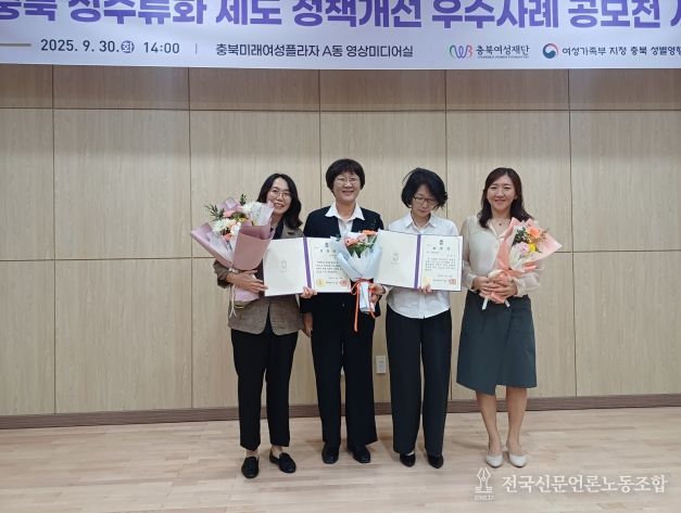 전국신문언론노동조합 김성길 기자 | 충북도는 9월 30일 충북미래여성플라자 영상미디어실에서 ‘성인지 정책 유공자 포상 및 성주류화 정책개선 우수사례 시상식’을 개최했다고 밝혔다.