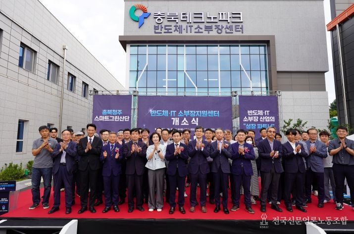 전국신문언론노동조합 김성길 기자 | 충북도는 30일 미래 반도체 소부장 산업의 핵심 거점 역할을 담당할 ‘지능형반도체‧IT 소부장 지원센터’ 개소식 행사를 개최했다고 밝혔다.
