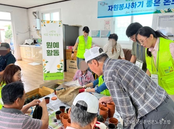 전국신문언론노동조합 김성길 기자 | 제주특별자치도사회서비스원은 지난 9월 30일, 성산읍 신풍리경로당에서 어르신들과 함께하는 원예 자원봉사 활동을 실시했다.